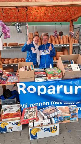 Bij het tuincentrum waren drie van onze vrijwilligers actief, 's morgen waren dat Angeline en Cocky en 's middags Pauline, die kaatste samen met ons teamlid Ans (foto).